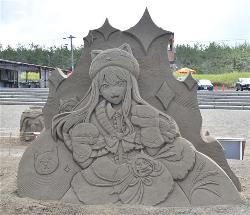 秋田県三種町の釜谷浜海水浴場で開催している恒例イベント「サンドクラフト2025inみたね」で、テレビアニメ「【推しの子】」とのコラボレーションが実現した。作中のキャラクター「黒川あかね」が、秋田犬をモチーフにした衣装をまとった砂像が展示されている。展示は9月30日まで。