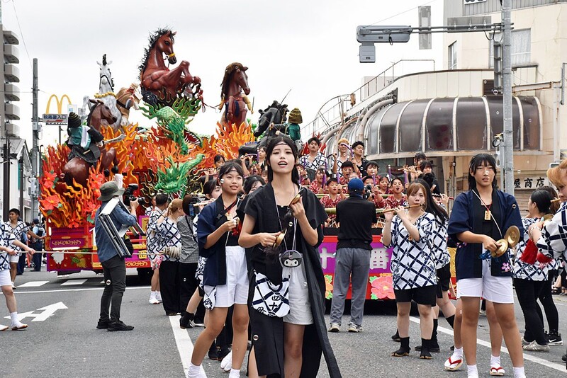 パレードは三本木稲荷神社付近からスタート。市民や十和田工業高校、三本木農業恵拓高校の生徒による三本木小唄流し踊りに続き、町内会などの山車や太鼓車が次々と登場。十和田湖伝説や源平合戦、昔話などを題材に、華やかな人形や工夫を凝らした仕掛けで沿道に詰めかけた市民らを沸かせた。