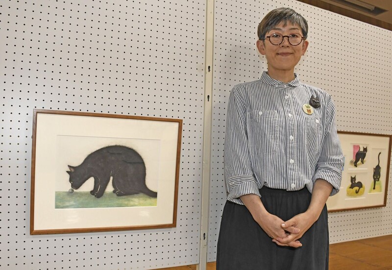 青森県三沢市出身のイラストレーターで紙版画作家の坂本千明さん(54)=東京在住=の絵本「ぼくはいしころ」の原画展が27日に市公会堂で始まった。来場した坂本さんは取材に、「約7年前、おいらせ町の実家に来た時に出会った猫がモデル。ほぼ実体験に基づいている」と語った。