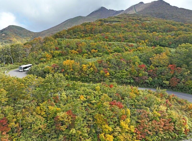同社によると、岩木山の紅葉は徐々に麓へ下り、見ごろは今月末まで続くという。