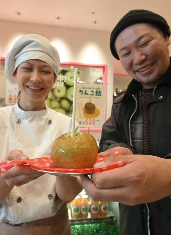 31日まで販売し、リンゴがなくなり次第終了する。交流サイト(SNS)で写真映えしそうなスイーツ。甘酸っぱい青春の思い出づくりに一口いかが。