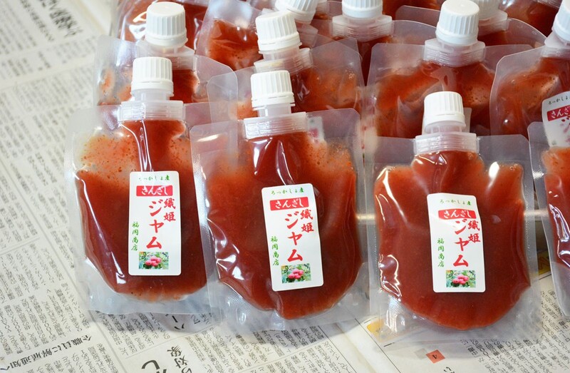 10月に入り収穫期を迎えた農園に伺うと、小さな実が真っ赤に熟し、風に揺れていた。一口かじり「酸っぱい中にも甘みがある」と福岡さん。村特産品販売所「六旬館」で、冷凍・乾燥させた実やジャム、ジュース、キャンディーなど加工品を販売している。