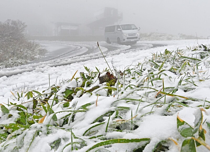 青森県弘前市の岩木スカイラインは20日午前、岩木山(標高1624メートル)で今季の初雪と積雪を確認したと発表した。同社によると初雪は平年並みで、昨年と同日だった。