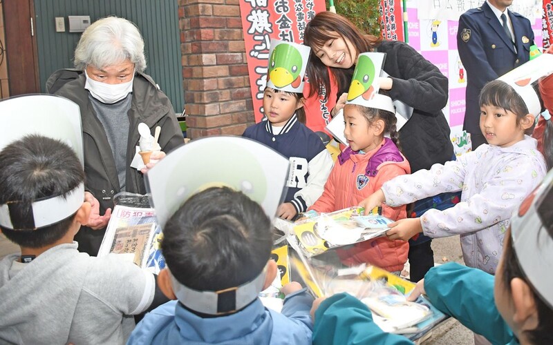 販売初日は、七戸署から特殊詐欺被害防止一日広報大使に任命された乙供文化保育園(東北町)の園児17人が同店前で広報活動を展開。実際にジェラートを試食した沼田悠吏ちゃん(5)は「(ジェラートは)サギかもくんに似ていた。味はおいしかった。特殊詐欺に遭わないようにしてほしい」と話した。