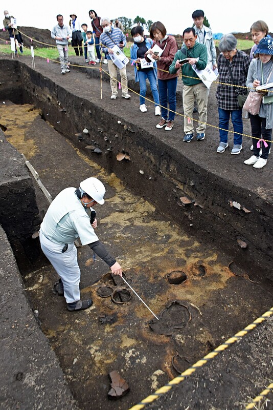 一王寺遺跡近くに住む60代女性は「発掘中の現場を見られるのは貴重。自然豊かな場所で何千年も前に縄文人が暮らしていた痕跡を感じることができた」と話した。