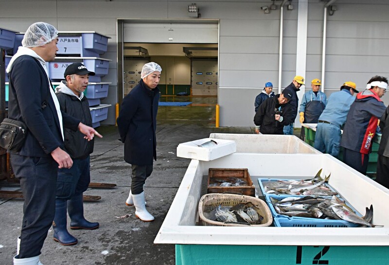 シン八戸はこれまで、実行委メンバーが豊洲市場を視察するなど、現地関係者らと交流を重ねてきた。今回は、豊洲の関係者に八戸港での魚の取り扱いを見てもらい、改善できる点などを検討する目的で開催した。