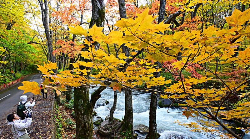 青森県十和田市の奥入瀬渓流で29日、紅葉が見ごろを迎えた。ブナ、カエデなどの広葉樹が生い茂る流域は黄色、オレンジ色、赤色などに染まり、国内外の観光客がせせらぎを耳に晩秋の彩りを満喫した。風による落葉が少なければ、紅葉は今週末まで楽しめる見通し。