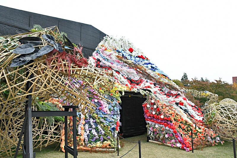 植物園内自由広場では、高さ約6メートル、幅約28メートルのフラワーアート「綾山玄武(りょうざんげんぶ)」が出迎える。ねぷたの技法を応用し、水を象徴する霊獣・玄武を竹と72種類の造花、ねぷた絵で制作。岩木山を模した玄武の甲羅の中には入ることができ、リンゴ手かごで装飾した空間が広がる。日没からはプロジェクションマッピングも実施する。