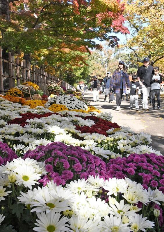 「弘前城菊と紅葉まつり」が開かれている弘前公園は木々が秋色に染まり、連日多くの観光客や市民らでにぎわっている。