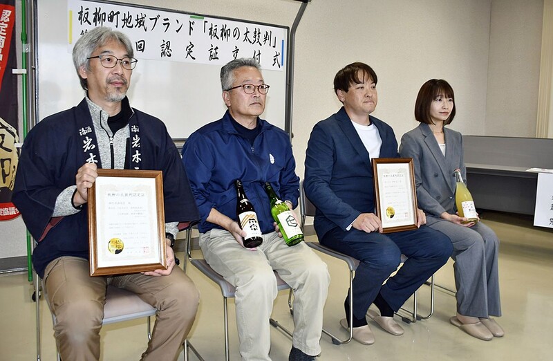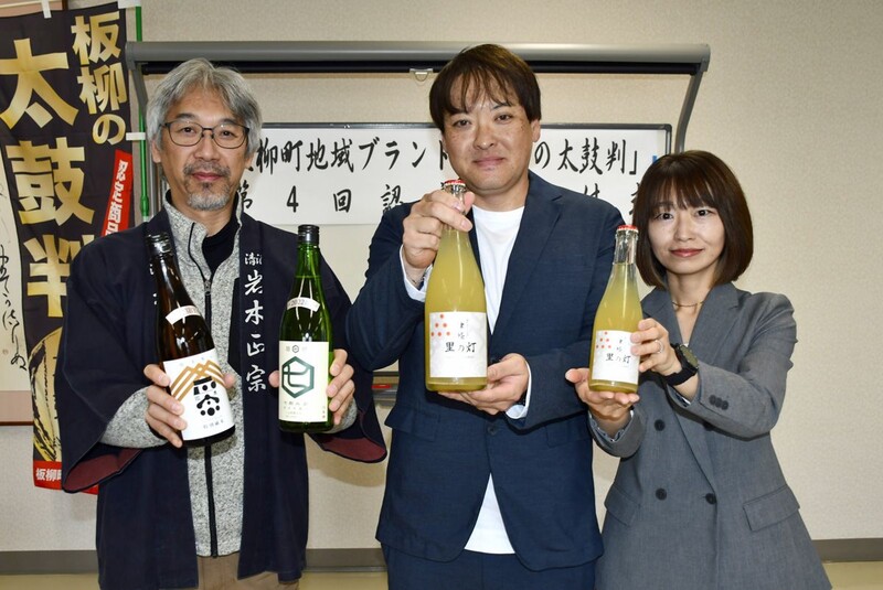 板柳町地域ブランド認定協議会(事務局・同町商工会)は、地域ブランド「板柳の太鼓判」に、里いちみ(同町)の「津軽 里の灯(あかり)シードル」と、竹浪酒造店(同町)の「岩木正宗 特別純米酒」「七郎兵衛 純米吟醸酒」の3商品を新たに認定した。4日、町商工会館で認定式を行った。