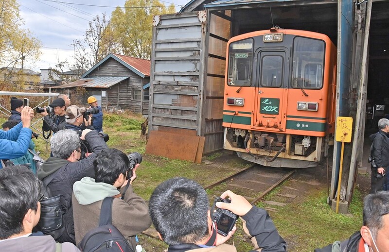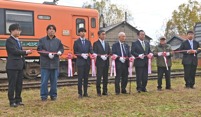 「記念イベント参加権付2日間フリーパス」(5千円)の購入者たちは、普段は立ち入り禁止となっている駅構内の線路付近に入り、車両や機関車を熱心に撮影。父・千人(かずと)さん(52)と一緒にカメラを向けていた小荒井歓輝(よしき)さん(11)=東京都=は「走れメロス号」の小型模型を持っているといい、「車体のオレンジと緑の色がかっこいい」と目を輝かせていた。