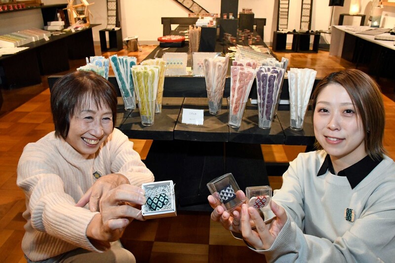 明治創業の京都の糸店「糸六」が、こぎん刺しの継承に取り組む弘前こぎん研究所(青森県弘前市)と協力し、新たなこぎん糸を開発した。21日、同市の藤田記念庭園でお披露目を兼ねた企画展が始まり、京都らしい“はんなり”とした色合いと、津軽の伝統が織りなすコラボレーションが来場者の目を楽しませている。