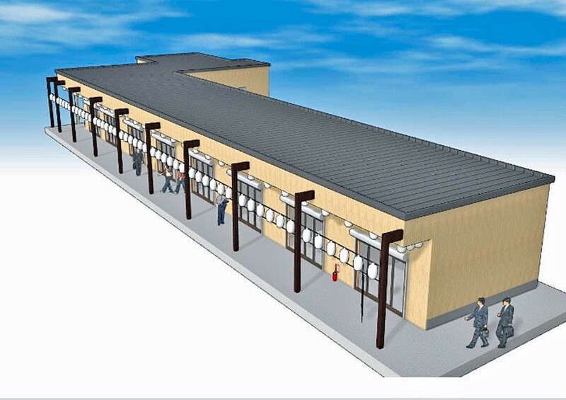 場所は飲食・商業施設「城東閣」の西側出入り口付近。約500平方メートルの敷地に10店が入居できる縦長の建物1棟を建設している。1店舗当たり約25平方メートルで、入居した店舗から営業を始める。
