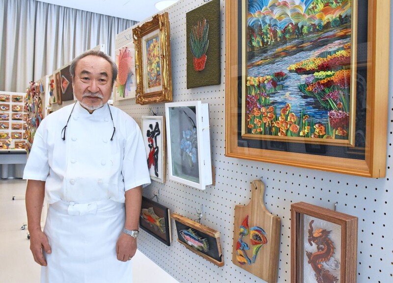 青森県十和田市のスパゲティ・ピザ専門店「すぱげ亭」のオーナーシェフ・森本克己さん(74)が本業と並行して手がけたアート作品を紹介する「ワクワクのおすそわけ。」が5日、市地域交流センター「とわふる」で始まった。自身初の本格的な個展で、60代の頃から制作を始めた「クイリングアート」など316点を展示。芸術の枠を超えて料理人が制作した異色の作品が、来場者の関心を集めている。7日まで。