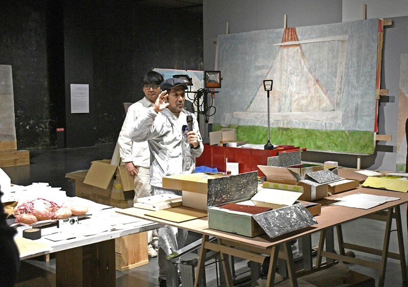 杉戸さんは取材に対し、「制作のプロセスも楽しんでもらえる展示構成となっている。絵の外側や空間全体で何かを感じ取ってほしい」と話した。同時開催するコレクション展では、同市出身の美術家・奈良美智さんと杉戸さんの共作も展示している。
