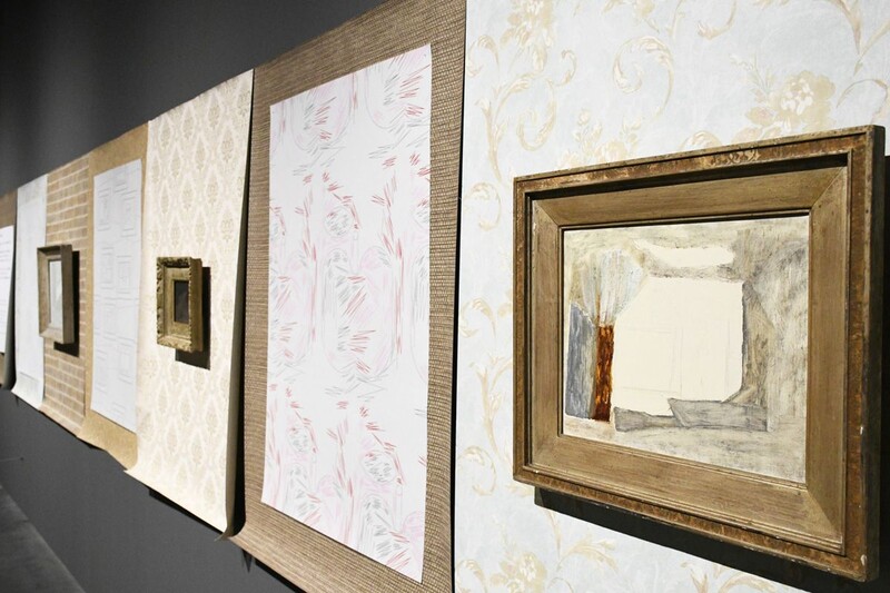 会場は大きく二つの空間から成り、一つ目の空間では、家屋に似た巨大な構造物が来館者を出迎える。構造物の外壁は、本来内側にあるべき木材がむき出しで、内部は外壁のようにさまざまな模様で装飾されている。内と外の逆転が壁の「裏側」への興味をかき立てる。
