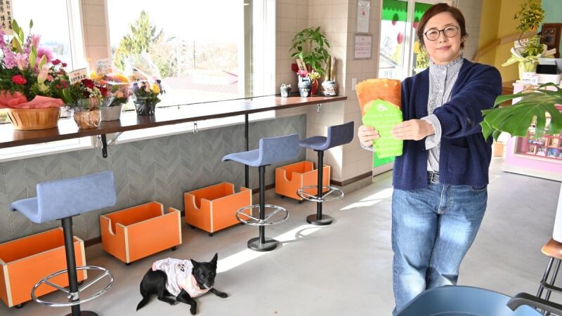 紫波町の旧彦部小敷地内に5日、ペットを同伴できるカフェ「ワンデー」がオープンした。同町二日町の菊池史子さん(49)が運営するキッチンカー「fu-go(フーゴ)」の人気クレープを販売する初の常設店。ドッグランやドッグプールも設けた。犬が苦手な人も安心して過ごせる設計にこだわり、人にも犬にも優しい癒やしの空間を提供する。