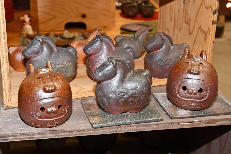津軽金山焼の野村美里企画部長は「窯の中に置かれた場所や温度によって少しずつ風合いが違う。お気に入りを見つけてほしい」と話した。年明けにもウマがモチーフの別の作品を窯出しする予定だという。