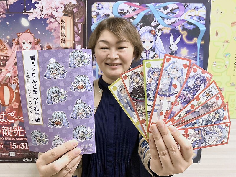 弘前観光コンベンション協会は現在行われている「ひろはこ 冬の観光キャンペーン」に合わせ、青森県弘前市内の喫茶店・土産店10店でキャンペーンキャラクター・雪ミクが描かれた「雪ミクりんごまんじ札」を配布する企画を実施している。10店舗はいずれもリンゴを使った商品を提供しており、まんじ札集めを通じてリンゴグルメを巡ってもらう狙い。期間は来年3月22日まで。