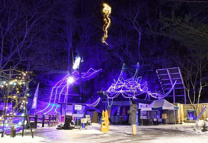 岩泉町の観光名所・龍泉洞は24日~2月1日、冬まつり(実行委主催)を開く。本番を前に地底湖をスカイランタンで彩り、洞窟外の園地をイルミネーションで飾り付けた。期間中には、まきストーブで暖を取れるフードコートや屋内に子どもの遊び場を初めて設ける。