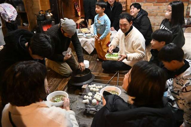 2日目はだまこ作りや菌床しいたけの収穫を体験し、最後に手這坂(てはいざか)集落の築170年超の古民家を訪問。町で駆除したクマ肉を使用した熊鍋を味わった。クマ肉を体験した参加者は「うまみがすごい」「臭くない」などと驚いていた。
