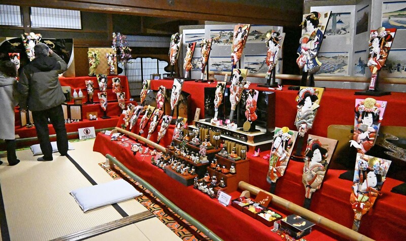 青森県八戸市本徒士町の国登録有形文化財・更上閣で、「正月飾り 羽子板展」が開かれている。美しい女性や歌舞伎役者を題材にした豪華絢爛(けんらん)な押し絵羽子板124点をはじめ、つるし飾り、日本人形などが展示され、近代和風建築の邸宅に彩りを与えている。25日まで。