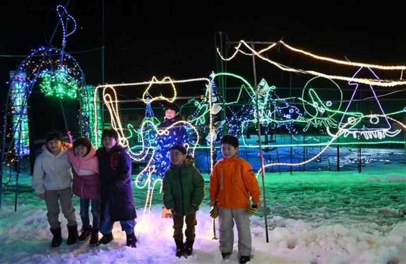 「そろそろ終わろうかと思っていたが、地域の方が楽しみにしてくれている。見た人が朗らかな気持ちになれば」と藤田さん。今年は孫の意見を参考に、顔はめパネル風などのフォトスポットも設けた。15日まで。午後5~9時。