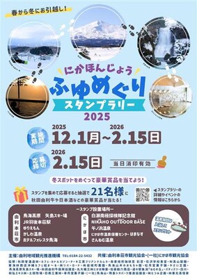 県で組織する由利地域観光推進機構と、両市の観光協会が企画。例年は4~5月に同様のスタンプラリーを開催しており2025年度も同時期に実施したが、冬季の誘客促進を目的に追加開催することにした。