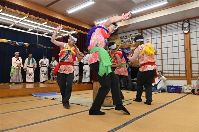 獅子舞の動作は穏やかで、獅子頭の振りや歯打ちがゆったりとしているのが特徴。獅子舞以外にも「式舞」「神舞」「武士舞」などの演目があり、最後は棒を手にした舞い手が臼を打ち鳴らしながら踊る「空臼舞(からうすまい)」で終えるのも特徴とされる。