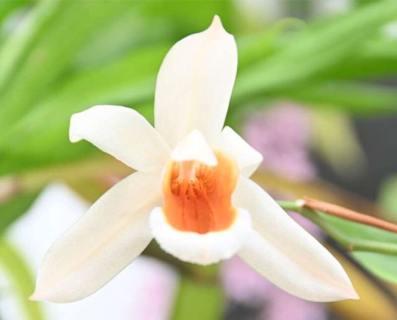 会場には現在、人気のカトレアやシンビジウムが色とりどりに並ぶ。花粉まで虫を誘導できるよう手前から奥まで真っすぐに唇弁(しんべん、リップ)の表面がけば立っているセロジネや、針のように伸びたがく片が目を引くマスデバリア、ふっくらとした丸い袋状の唇弁があるフラグミペディウムなどは形状も見どころの一つだ。