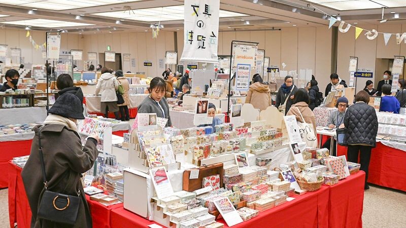 盛岡市菜園のカワトク7階で、「もりおか文具の博覧会」が開催されている=写真。ノートや便箋といった紙を中心とした文房具や雑貨が並ぶ。