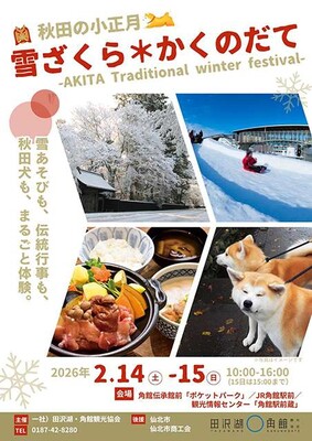 秋田の冬の魅力を体感して―。伝統行事や雪遊びなどが楽しめるイベント「秋田の小正月 雪ざくら*かくのだて」=写真=が来月14、15の両日、仙北市角館町中心部の3会場で開かれる。