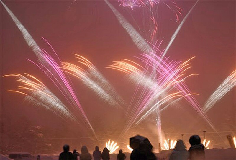 十和田湖畔の冬を満喫できるイベント「十和田湖冬物語」(実行委員会主催)が30日、青森県十和田市休屋地区の多目的広場で開幕した。会場では恒例の花火が打ち上げられ、冬の夜空を彩った。2月23日まで。