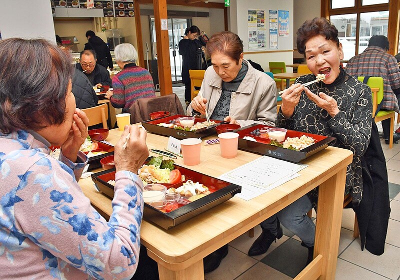 友人らとヘルシー御膳を味わった同町の花田ハルエさん(80)は「味付けもちょうど良くて、どれもおいしい」と笑顔で話した。鶴田御膳は1食1500円(税込み)で事前予約制。2月はヘルシー御膳を、3月は「彩り御膳」を提供する。問い合わせは瀬戸代表(電話090-2279-6964)へ。
