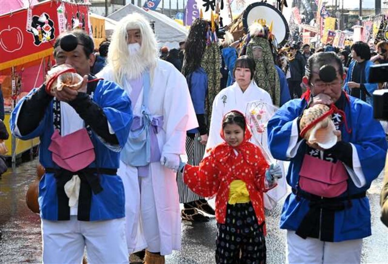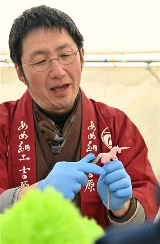 多彩な催しも企画された。同市の田代岳からあめを求めて下りてくるという伝説に基づく「白ひげ大神巡行」では、頭巾にもんぺ姿の少女「おこう」、巫女(みこ)らの一行が会場を練り歩いた。日本伝統飴(あめ)細工協会の会員によるあめ細工の実演販売も人気を集めた。