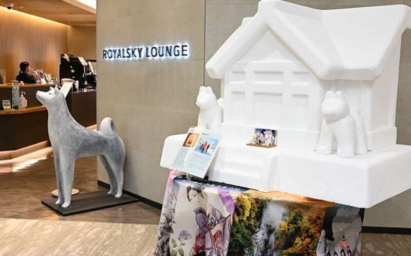 同市の魅力発信やラウンジの利用者増加につなげようと、秋田空港ターミナルビルと同市、県観光連盟が共同で開催。期間中は「七夕絵どうろう」や「川連漆器」「犬っこまつりのお堂」などを展示している。