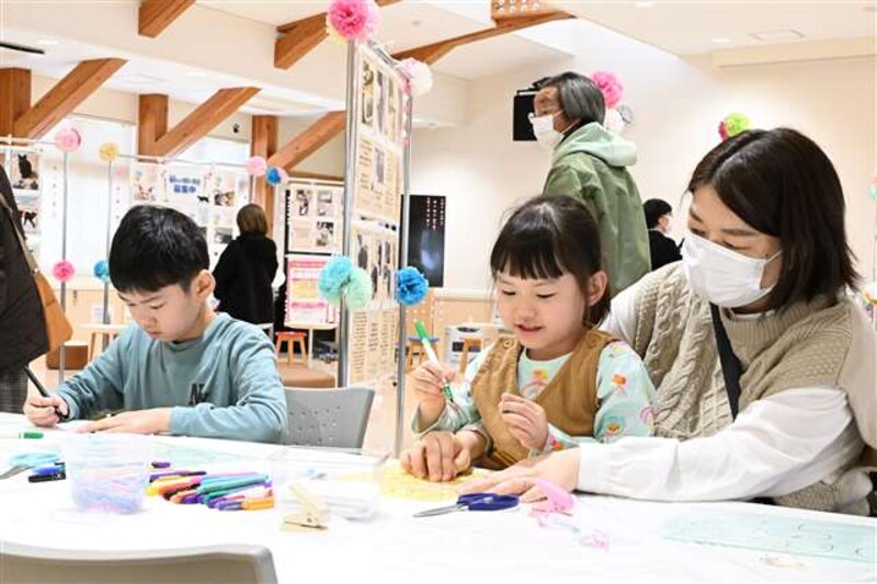 猫の日の22日は、猫用ベッドや、迷子札などの制作体験ができるブースも設けられた。広面小3年の藤谷悠月さんは譲渡猫のポロくん(雄、9歳)の飼い主で、迷子札を制作。「自分の猫だと分かるようにピンクや黄色など目立つ色を使った。もし猫が迷子になっても見つけてもらえる可能性があると感じ、安心感が増した」と話した。