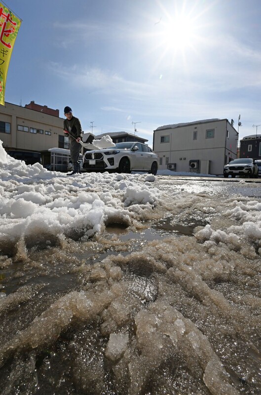 22日の青森県内は高気圧に覆われ気温が上昇、青森地方気象台の全23観測地点中、19地点で今年の最高気温を更新した。春めいた陽気に包まれ雪解けも進んだ。