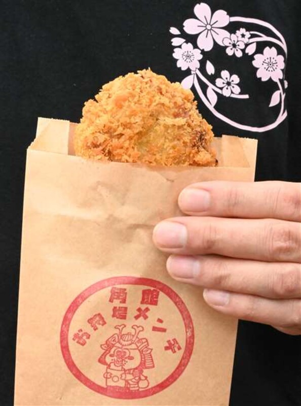 秋田県仙北市角館町の武家屋敷通りにある「お食事処 桜の里」は肉や野菜を山椒(さんしょう)みそで調理した地域の名物・御狩場焼(おかりばやき)をアレンジしたメンチカツを販売している。