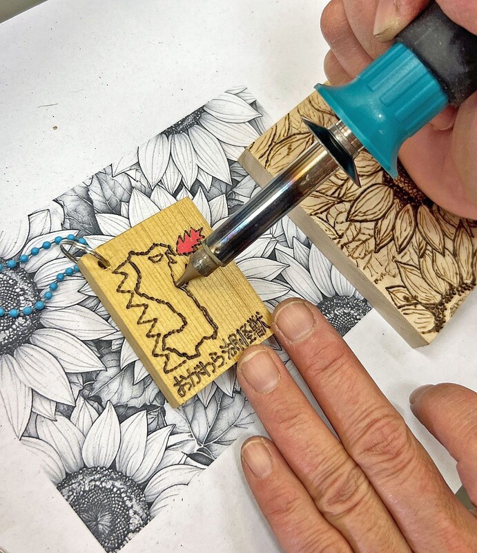 由美子さんは「全て手作りのキーホルダー。木のぬくもりも楽しんでほしい」と笑顔。中野代表は「木の名前は聞いたことがあっても、見たことも触ったこともない人が多いと思う。今後はリンゴや桜、ブナなど樹種を増やしていきたい」と意気込んだ。