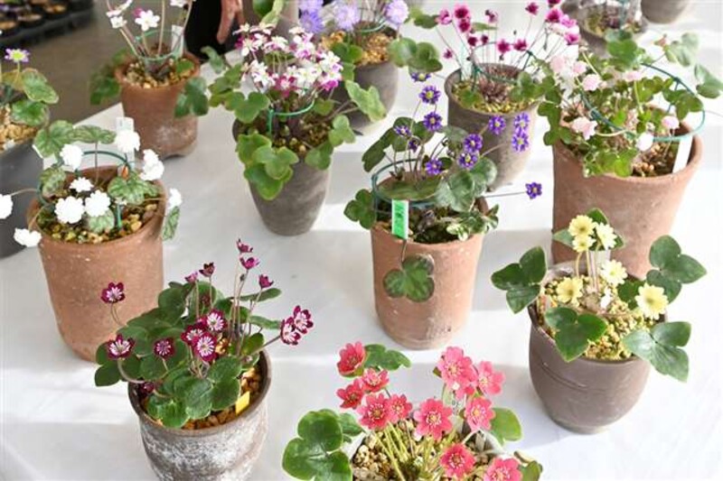 代表の鈴木龍一さんは「いろいろな色や形になるよう交配させ育てた。ぜひ会場を訪れ、雪割草の美しさを感じてほしい」と話した。