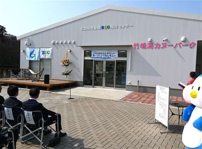 開業日となった28日にはオープニングセレモニーが行われ、市役所関係者や地元住民らが出席。市川雄次市長は「施設周辺を鳥海山を眺めながら楽しめる場所として整備してきた。カヌーパークを整備したことで、より多くのことを楽しめる場所になる」とあいさつした。その後、テープカットやご当地ヒーロー「超神ネイガー」との餅まきも行われた。