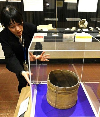 このほか縄文時代の石器や動物の骨、平安時代の役所に関わりがあるとみられる土器なども目を引く。資料館の担当者は「身近な地域の出土品を知ってもらい、自分たちの生活を考えるきっかけにしてほしい」と話した。