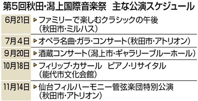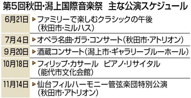 チケット販売など各公演の詳細は秋田・潟上国際音楽祭の公式サイトで。問い合わせは実行委員会事務局TEL018・874・9215