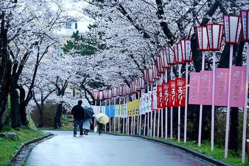 秋田県由利本荘市の桜の名所として知られる本荘公園で10日、「本荘さくらまつり」が開幕した。19日までの期間中、屋台の出店や夜間のライトアップ、野外のステージイベントなどが行われる。桜はすでに満開を迎えており、11、12日が見頃となる見込み。