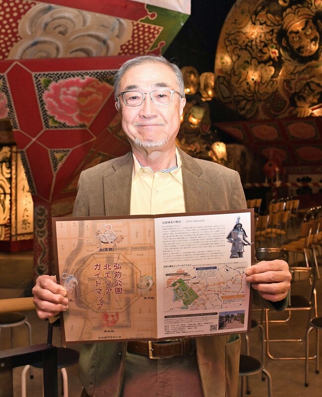 マップの裏表紙にある弘前城北門の歴史をまとめたコラムも担当した花田会長は「弘前城の正門である北門までぜひ足を延ばして見に来てほしい。マップを活用し、街歩きを楽しんで」と話した。