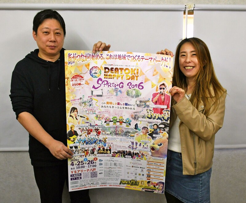 伝統文化やスポーツ、グルメが融合したイベント「DEATOKI HAPPY DAY(であとき ハッピーデイ) SPRING 2026」が25、26の両日、青森県八戸市のYSアリーナ八戸で開かれる。2日間で延べ250の団体・店舗が県内外から参加し、多彩なサービスやパフォーマンス、食を提供する。