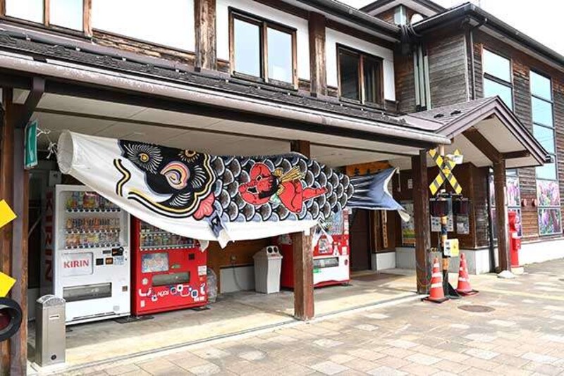 由利高原鉄道では毎年この時期、列車内をこいのぼりで飾り付ける「こいのぼり列車」を運行し、駅舎内も装飾している。駅入り口には全長約5メートルのこいのぼりが飾られているほか、ホームでは青、赤など3メートルほどのサイズのものが色鮮やかに泳ぐ。