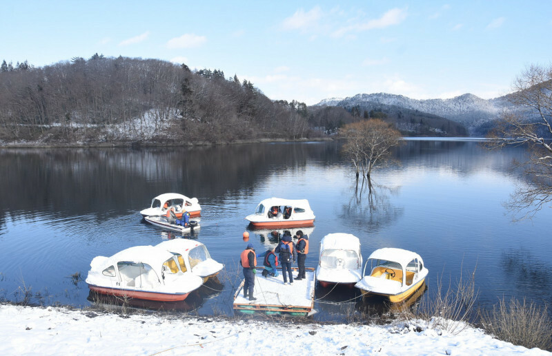 猿ケ石川をせき止めてできた、周囲約45キロのダム湖。コイやヘラブナ、冬にはワカサギ釣りを楽しめる淡水魚の宝庫としても知られる。6月中旬から7月上旬にかけて、約20万株のアヤメが湖畔を彩る。夏はカヌーやヨットなども楽しめる。